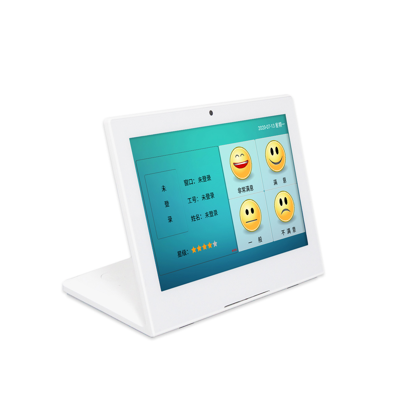 員工上崗時(shí),在員工客戶(hù)端或控制器上輸入自己的工號(hào)登錄評(píng)價(jià)系統(tǒng)確認(rèn)當(dāng)前員工身份,以便于評(píng)價(jià)數(shù)據(jù)具體到個(gè)人, 客戶(hù)走近柜臺(tái)時(shí),員工按動(dòng)問(wèn)候按鈕,評(píng)價(jià)器播放語(yǔ)音:“您好,歡迎光臨”。員工辦理完業(yè)務(wù)后,按動(dòng)評(píng)價(jià)按鈕,評(píng)價(jià)器語(yǔ)音提示顧客“請(qǐng)您對(duì)我的工作給予評(píng)價(jià)”,客戶(hù)選擇按鍵評(píng)價(jià)后,評(píng)價(jià)器提示語(yǔ)音“謝謝”。(語(yǔ)音提示可自定義;員工登陸及觸發(fā)機(jī)制可通過(guò)系統(tǒng)開(kāi)放接口對(duì)接到用戶(hù)自己的OA系統(tǒng),可實(shí)現(xiàn)一筆業(yè)務(wù)對(duì)應(yīng)一筆評(píng)價(jià)以及自動(dòng)觸發(fā)評(píng)價(jià)功能。)