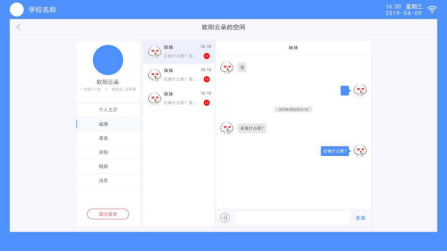 l 個(gè)人信息:個(gè)人信息展示頭像、姓名、班牌首頁(yè)布局、消息。